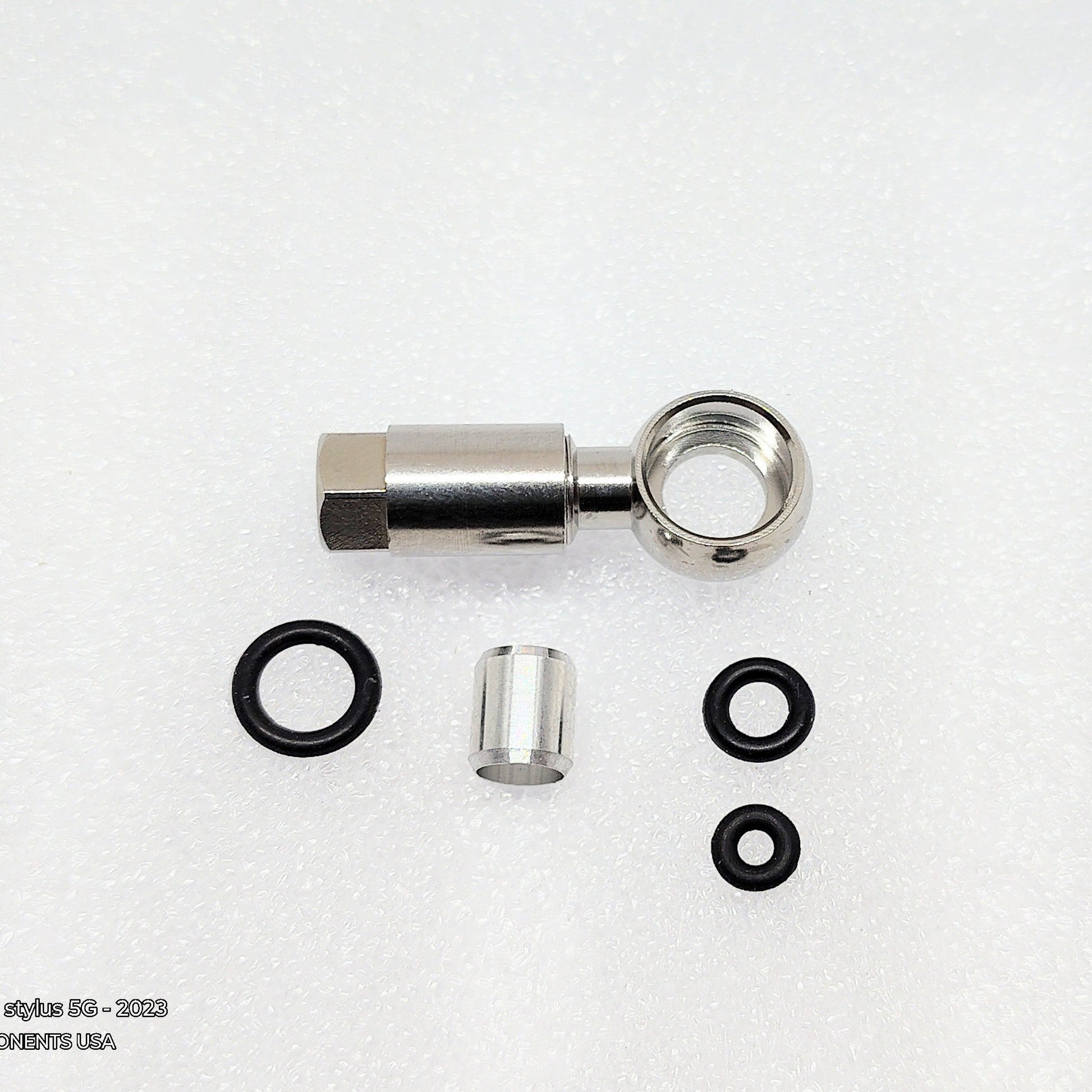 Includes hose cover, olive, stainless banjo body and three different o-rings.